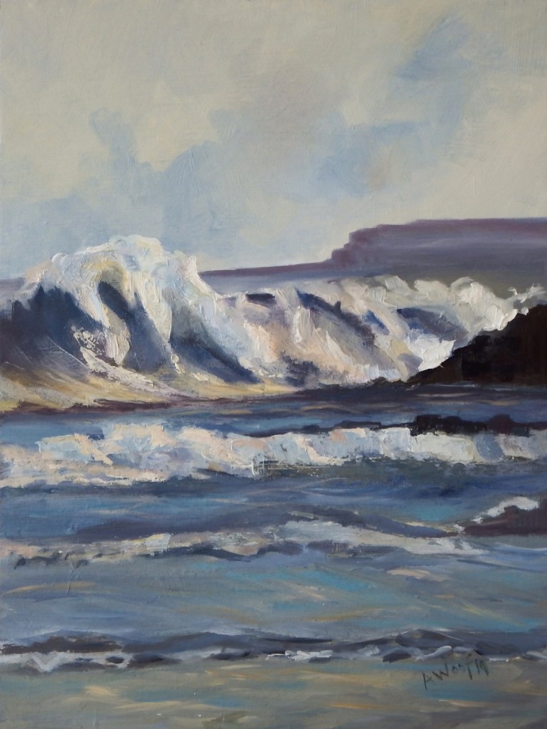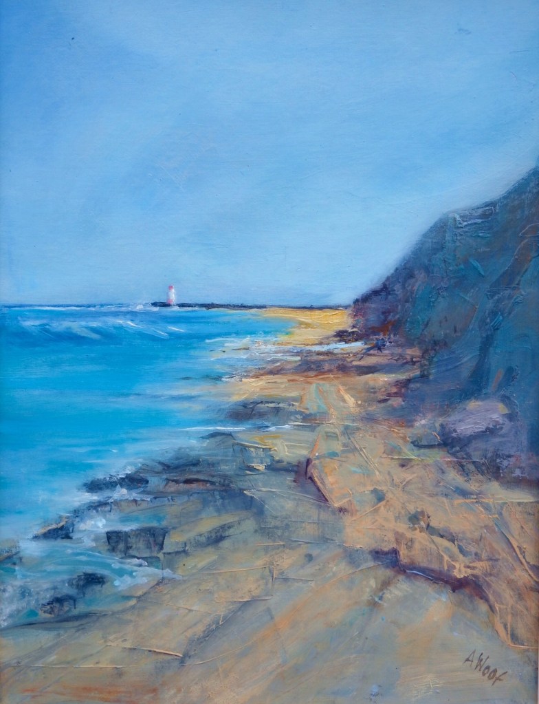 Angela Woof is an Artist living and working in The Scottish Borders. Inspired by local coastlines and landscape, she aims to capture the effects of changing weather patterns, light and mood.